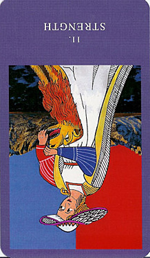 This card carries the number 11. In the Rider-Waite deck, Strength and Justice have swapped places because Waite saw links with the astrological signs Leo and Libra.