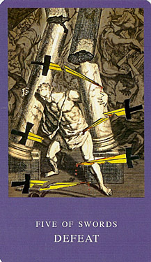 The 5 of Swords is about facing reality. The 5 is an assignment number, and in the slighly more difficult suit of Swords, it means you face a difficult challenge where your past experiences could hold you down.
