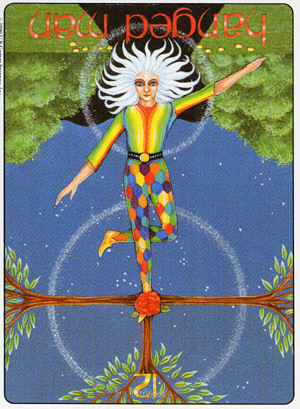 First you learned that you're not a plaything of fate, that you can make your own choices. Then you've learned how to fend for yourself and face yourself. Now, at The Hanged Man, you can learn to let go. You no longer have to cling to old values. You've found strength in yourself and by letting go, you allow growth.