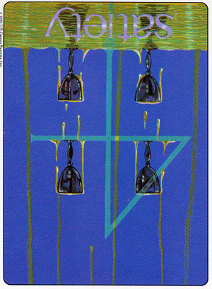With the 4, the second cycle of this suit is commenced, where a choice between structure and feeling has to be made, where old securities have to be let go of to work towards a new future. But like Wands, Cups don't like structure much, they prefer to be free and dream rather than to make commitments and go for something.