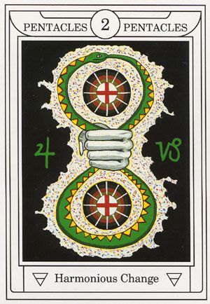 The 2 of Pentacles is an assignment number card, and the assignment here is to maintain a happy and relaxed attitude during a wait for results of what you started.