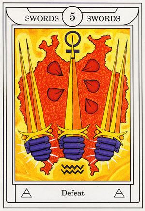 The 5 of Cups is about overcoming sadness and disappointment. You've let go of your old securities to embrace the new and exciting, now something has gone awry and you feel bad about that. But don't forget to notice those things that did go right.