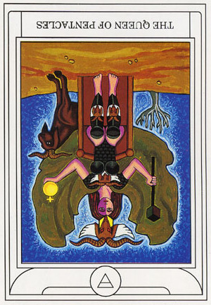 The Queen in the suit of Pentacles becomes aware of her Earthly attributes; she's reliable and sober, able to give good advice.