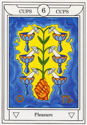 The 6 of Cups is about having confidence in something. It is the number of security and harmony. In the suit of Cups this means to be in harmony with yourself.