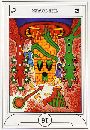 The card of The Tower goes by different names in different Tarot games. Some call it The Tower of Destruction, or The House of God, or Tower of the Light.