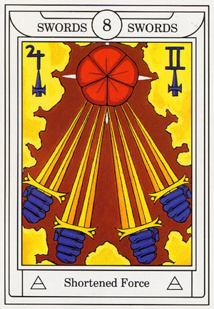 The 8 of Swords is about slowly regaining strength and energy. The 8 is an assignment number, and in the element of Swords it's a bit harder than usual.