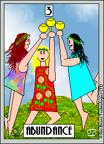 The 3 of Cups represents hope, faith and love. The 3 is a reward number and in this suit of Cups your feelings during that number will be that of joy and self-contentment.