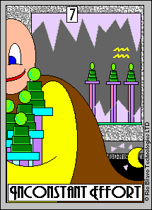 With the 7 of Wands, the striving cycle starts. It is about having the determination to complete your ideas, despite the fact that that might cause you some discomfort.