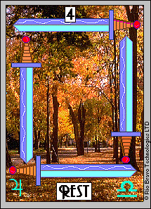 4 is the first number in the cycle of giving things shape. It's about making things real. The element of Swords also relates to making things real, so this enhances the effect so much that arrogance can cause you to exhaust yourself.