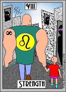 Strength is the second of the four midieval values. Justice, card 11, is the first, and the third, Temperance, is card 14.
