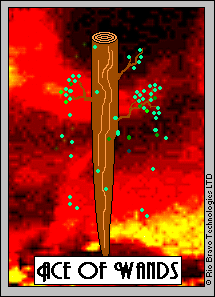 The ace of wands represents the beginning of an idea. The element fire and the number 1 give a powerful combination: enterprise and new beginnings apply to both. This is an energetic combination, which is why the card is generally considered a positive one. Spring is the season associated with this card.