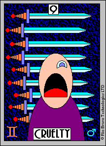 The 9 of Swords represents relief from cropped-up grief. The number 9 is a number of reward and rest and accomplishment. In the element of Swords there is not a lot of time for rest, but without any rest you'd just burn yourself out.