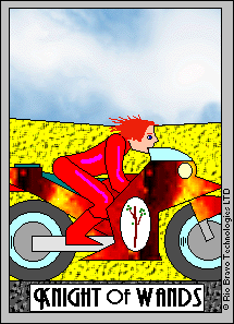 The Knight of Wands likes action and progress, but isn't too concerned with the usefulness of his actions or the ramifications to those around him.