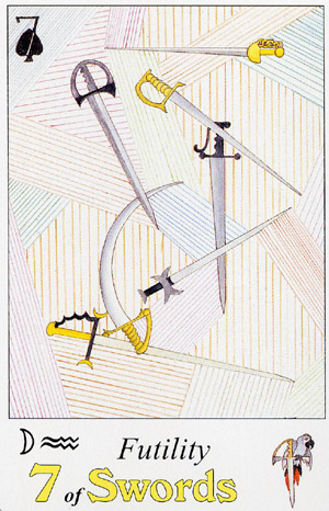 The 7 of Swords is about making slow progress because you can't trust the situation and/or people around you.