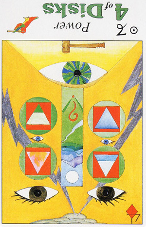 The 4 of Pentacles is about holding on to what you got. The number 4 represents structure and order, and fits well with the suit's element, Earth.