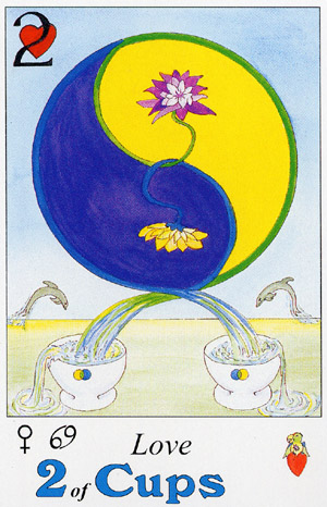 This the first assignment number of the Cups suit. Unlike Wands, with the Fire element, Cups, with the water element, has a lot more patience. Water is by nature more introspective, and this second card in the Cups suit is indeed about exploring yourself. The outcome is uncertain as always, but it usually results in better acceptance of yourself.