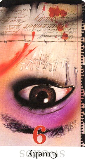 The 9 of Swords represents relief from cropped-up grief. The number 9 is a number of reward and rest and accomplishment. In the element of Swords there is not a lot of time for rest, but without any rest you'd just burn yourself out.
