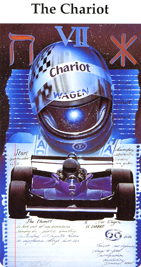 During the prevous card, The Lovers, all the wisdom of the first cards in the deck has been processed and a choice was made for personal growth. Now it's time to do something with all this baggage, to actually travel the road. A lot has been done so far, wisdoms have been accumulated and integrated into one's personality.