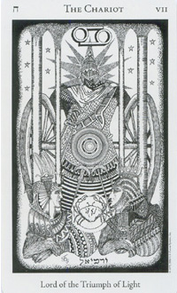 During the prevous card, The Lovers, all the wisdom of the first cards in the deck has been processed and a choice was made for personal growth. Now it's time to do something with all this baggage, to actually travel the road. A lot has been done so far, wisdoms have been accumulated and integrated into one's personality.