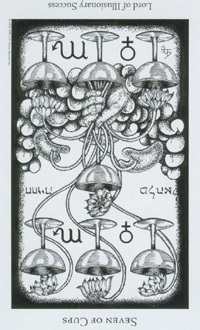 The 7 of Cups is about making a choice between different ideals. But Cups, with the water element, don't like making definitive choices that much, making this 7 in this suit a bit of a hard choice.