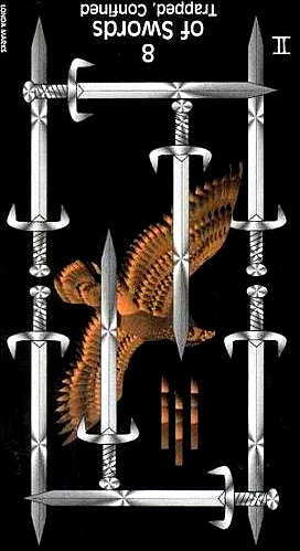 The 8 of Swords is about slowly regaining strength and energy. The 8 is an assignment number, and in the element of Swords it's a bit harder than usual.