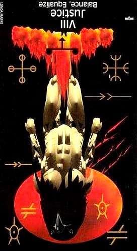 This card carries the number 11. In the Rider-Waite deck, Strength and Justice have swapped places because Waite saw links with the astrological signs Leo and Libra.