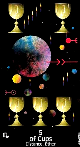 The 5 of Cups is about overcoming sadness and disappointment. You've let go of your old securities to embrace the new and exciting, now something has gone awry and you feel bad about that. But don't forget to notice those things that did go right.