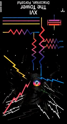 The composed number of this card is the same as The Chariot's, but where The Chariot represents balance, The Tower represents chaos.