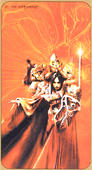 Where The Emperor is the chief of worldly power, The Hierophant is the head of spiritual matters.