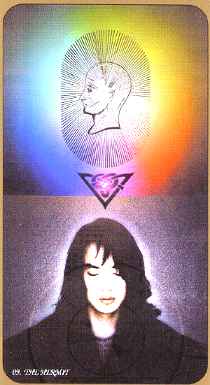 The Hermit shuts out the world and retreats into solitude to better understand some spiritual aspect of life. He opens to the cosmos and lets it's wisdom sink in. Hermits are often seen as wise old men who can guide a traveller along a journey.