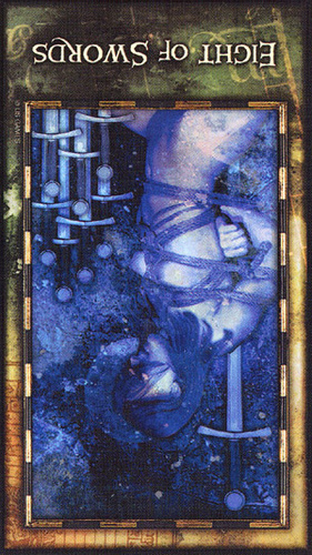 The 8 of Swords is about slowly regaining strength and energy. The 8 is an assignment number, and in the element of Swords it's a bit harder than usual.