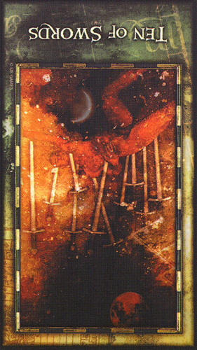The Hermit, also a 9, closed off the upperworld. The Moon closes the underworld.