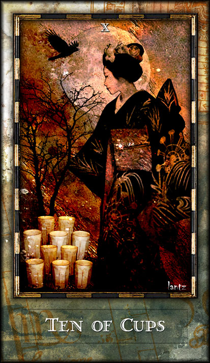 The 10 of Cups is the link to the Swords suit. It is time to leave your own emotions behind and face the world and the tasks ahead.
