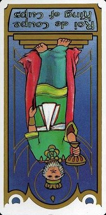 The King of Cups uses his intuition to achieve his ideals. Since Cups are turned inward, and Kings turned to the outside world, this card might be a difficult one, or it could be a powerful one.