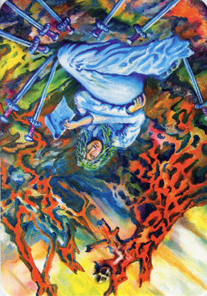 This card falls when you've completed all assignments, overcome all obstacles and are completely at peace with yourself due to your accomplishments. Yet Tarot wouldn't be Tarot if it didn't challenge you to enter entirely new worlds and start the process all over again.