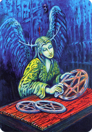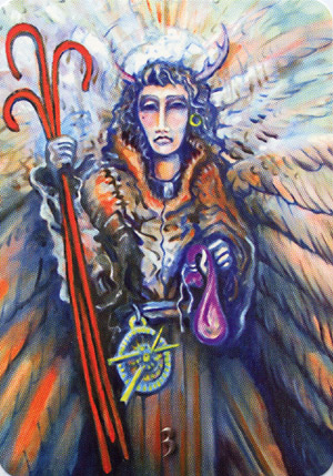 The number 1, associated with this Ace card, is the number of a fresh start with yet more new impulses coming your way. It might be compared to The Fool, the first card of the major arcana.