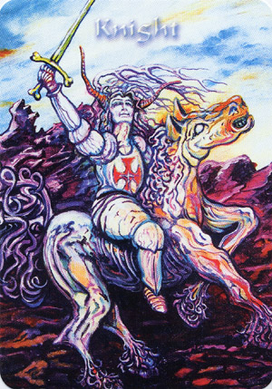 The Knight of Swords lacks the naivety of the Knight of Wands, he has analyzed the terrain ahead and weighed his options there. He knows what his own nature can throw into the mix, but does not let himself be held idle by that. The activities ahead will likely include the solving of conflicts and problems on your road to your ideal.