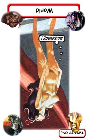 This card falls when you've completed all assignments, overcome all obstacles and are completely at peace with yourself due to your accomplishments. Yet Tarot wouldn't be Tarot if it didn't challenge you to enter entirely new worlds and start the process all over again.