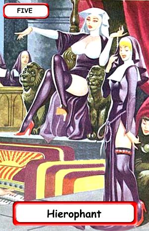 Where The Emperor is the chief of worldly power, The Hierophant is the head of spiritual matters.