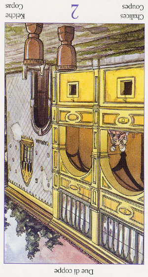 This the first assignment number of the Cups suit. Unlike Wands, with the Fire element, Cups, with the water element, has a lot more patience. Water is by nature more introspective, and this second card in the Cups suit is indeed about exploring yourself. The outcome is uncertain as always, but it usually results in better acceptance of yourself.