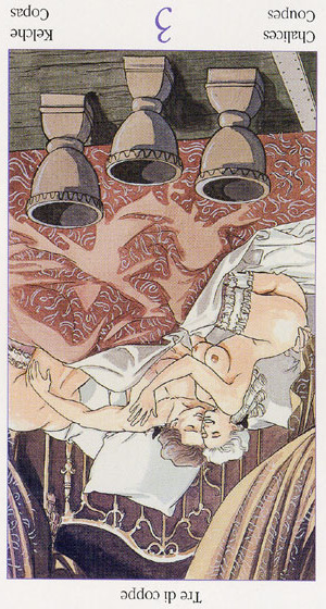 The 3 of Cups represents hope, faith and love. The 3 is a reward number and in this suit of Cups your feelings during that number will be that of joy and self-contentment.