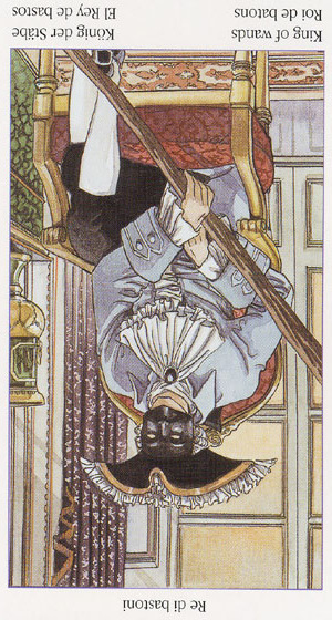 The King of Wands uses the properties of Wands (vitality, optimism, enthousiasm) to go out with confidence. He is seen as a leader with charisma.