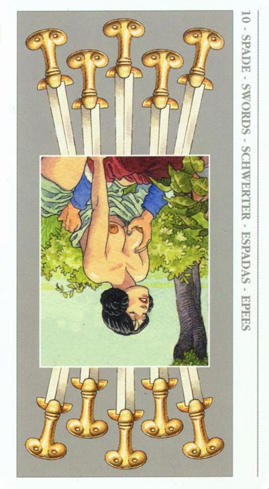 The 10 of Swords is about saying final goodbye to things or people that are bad to you.
