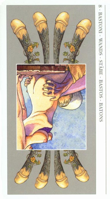The 8 is the third and last assignment number. The element Fire, associated with Wands, doesn't like assignments much. It prefers to do exactly as it pleases.