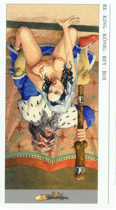 The King of Wands uses the properties of Wands (vitality, optimism, enthousiasm) to go out with confidence. He is seen as a leader with charisma.