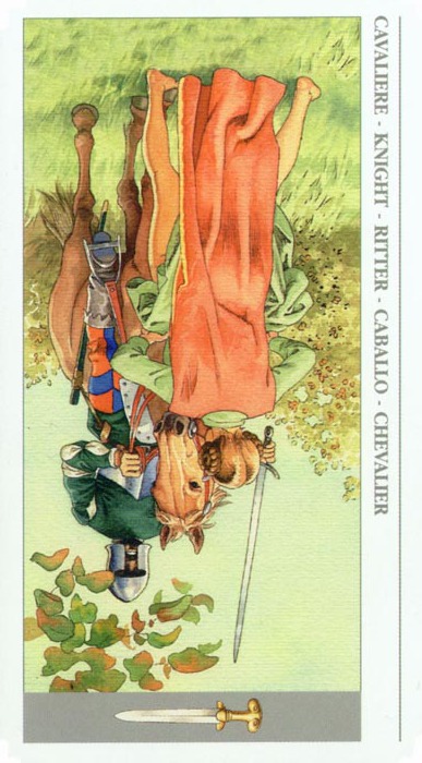 If a card is upside down, that is the common notation for the opposite meaning of the card, also known as the "negative" or "reversed" meaning of the card.