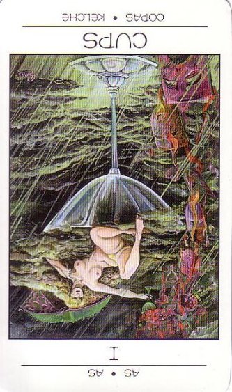 The number 1, associated with this Ace card, is the number of a fresh start with yet more new impulses coming your way. It might be compared to The Fool, the first card of the major arcana.
