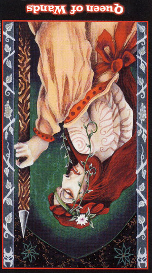 The Queen of Wands is drawn when you (have to) become more aware of the properties of the Wands suit; vitality, optimism and enthousiasm.