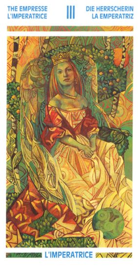 The Empress carries the number 3. This is the number of birth, of plenty, of harvest, of summer, of the first results. The number 3 stands for joy and fun, for creativity and fantasy, for warmth and humor.