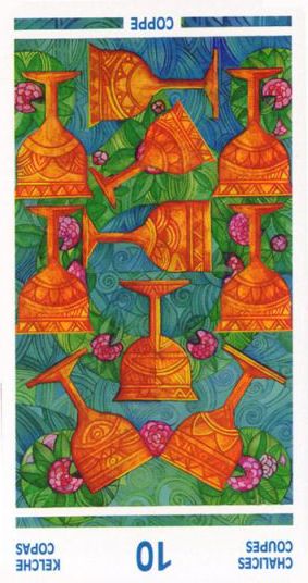 The 10 of Pentacles represents material posessions. The number 10 of Pentacles forms the links to the Ace (first card) of Wands (the first suit in the minor Arcana), and thus prepares to bring you back to the beginning of the minor Arcana, ready for a next cycle through the tarot.